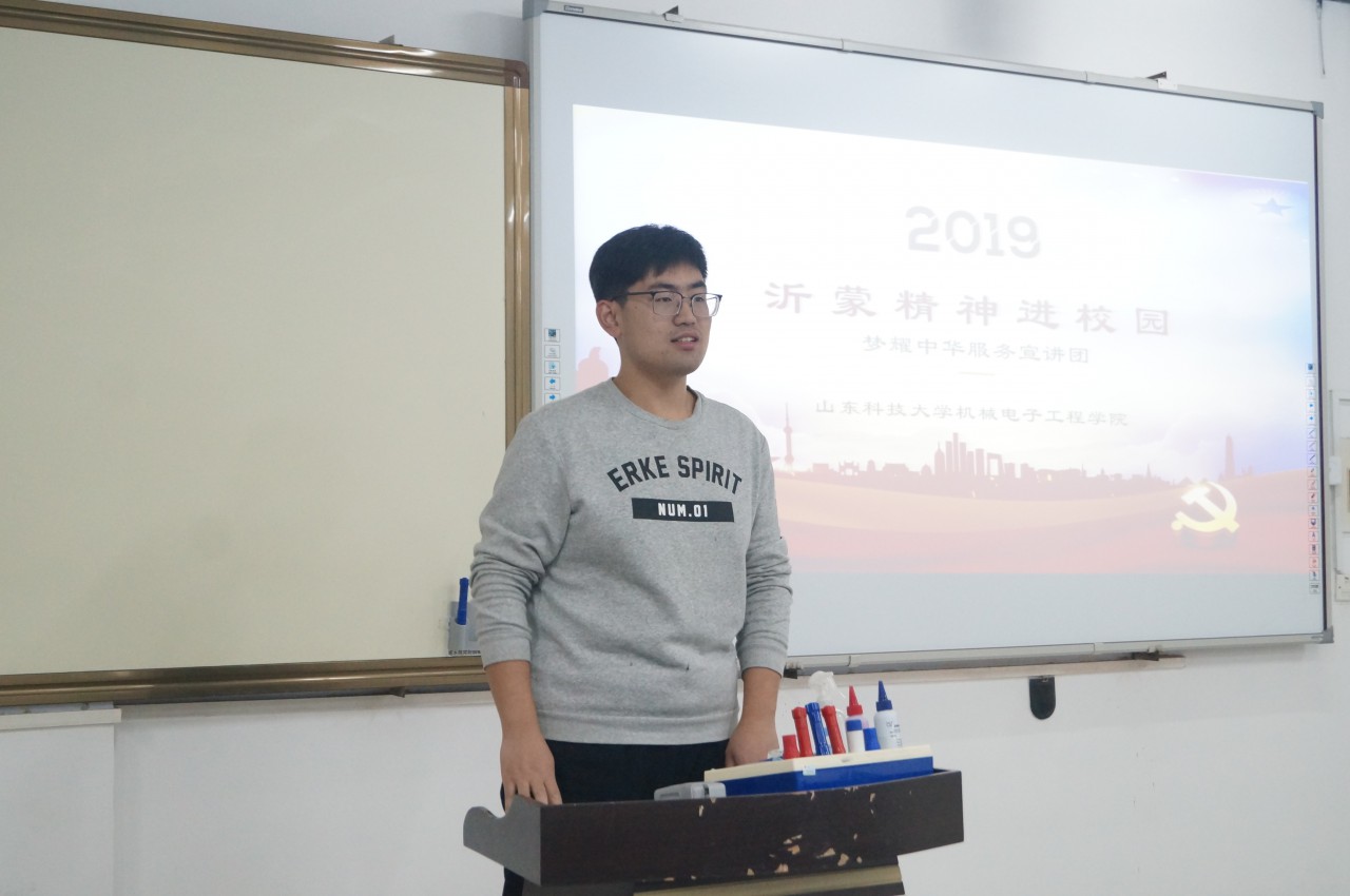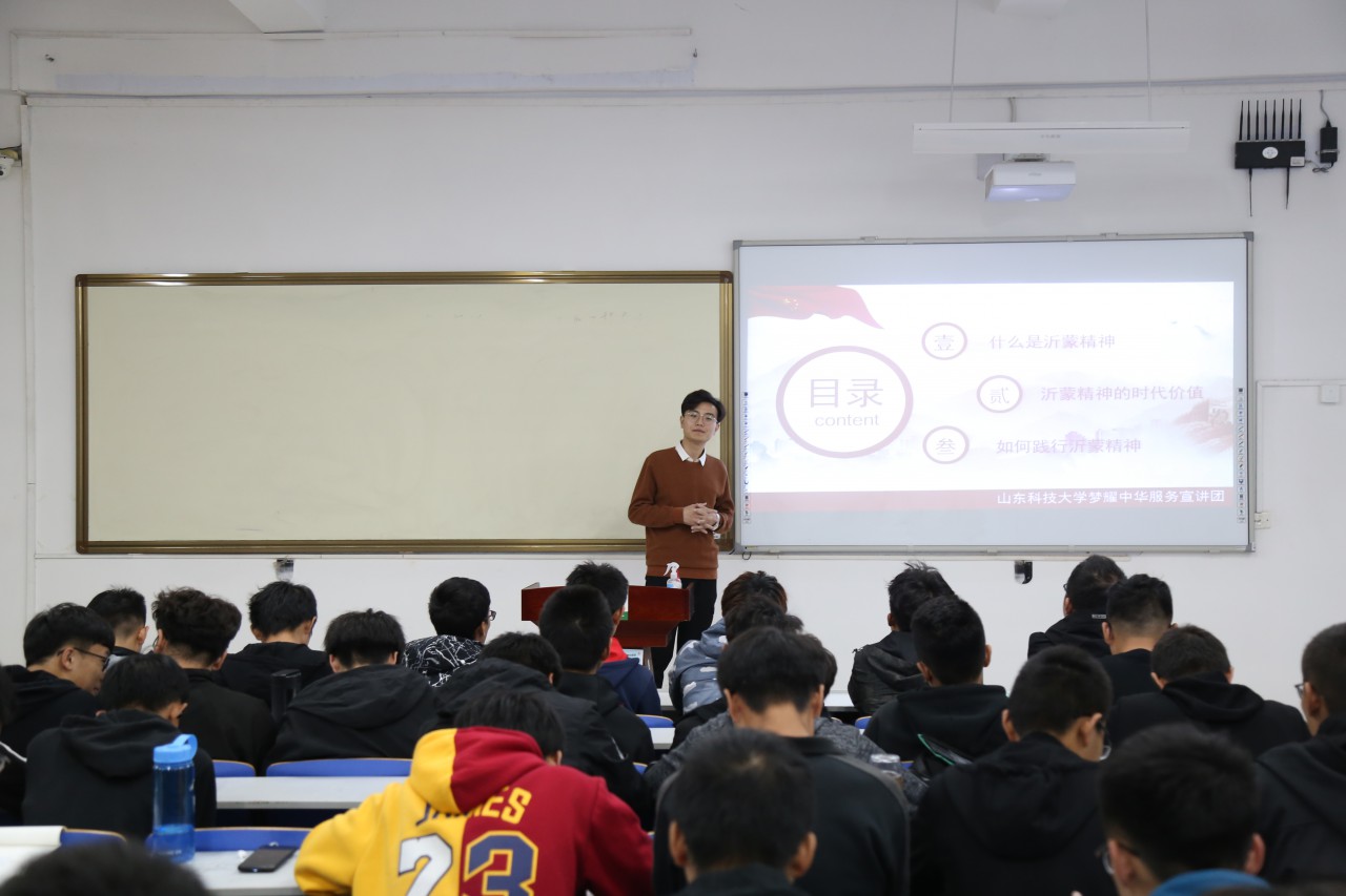 宣讲从“沂蒙精神”的内涵和发展历程、“沂蒙精神”的当代价值、新时代老员工应当如何践行“沂蒙精神”三方面展开,并结合《力量》纪录片等影视作品,直观生动地带领广大同学,深入了解了沂蒙精神“水乳交融、生死与共”的具体内涵。宣讲团成员提出,前辈们为我们的解放事业奉献了一切、牺牲了一切,我们要倍加珍惜今天的幸福生活,努力弘扬、践行沂蒙精神。梦耀中华服务宣讲团骨干成员还分享了他们在沂蒙地区的实践经历和实践故事,讲述了社会实践的感受和切身体验到的沂蒙精神,使同学们收益颇丰。