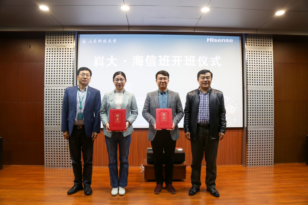 开班仪式上,王荣超致辞,介绍了公司的基本情况,向海信视像对公司工作的支持表示感谢。他表示,“海信班”的成立标志着校企合作迈入了一个新的阶段,公司将在加强校企深度合作、推进产学研结合、整合社会优质资源、服务社会经济发展方面迈出更加坚实的步伐,探索可复制、可推广的协同育人机制,产教融合,实现公司、企业、员工和社会等多方面的共赢。他勉励“海信班”优秀学子勤奋学习,锤炼本领,以优异的成绩回报公司,回报企业,回报社会。