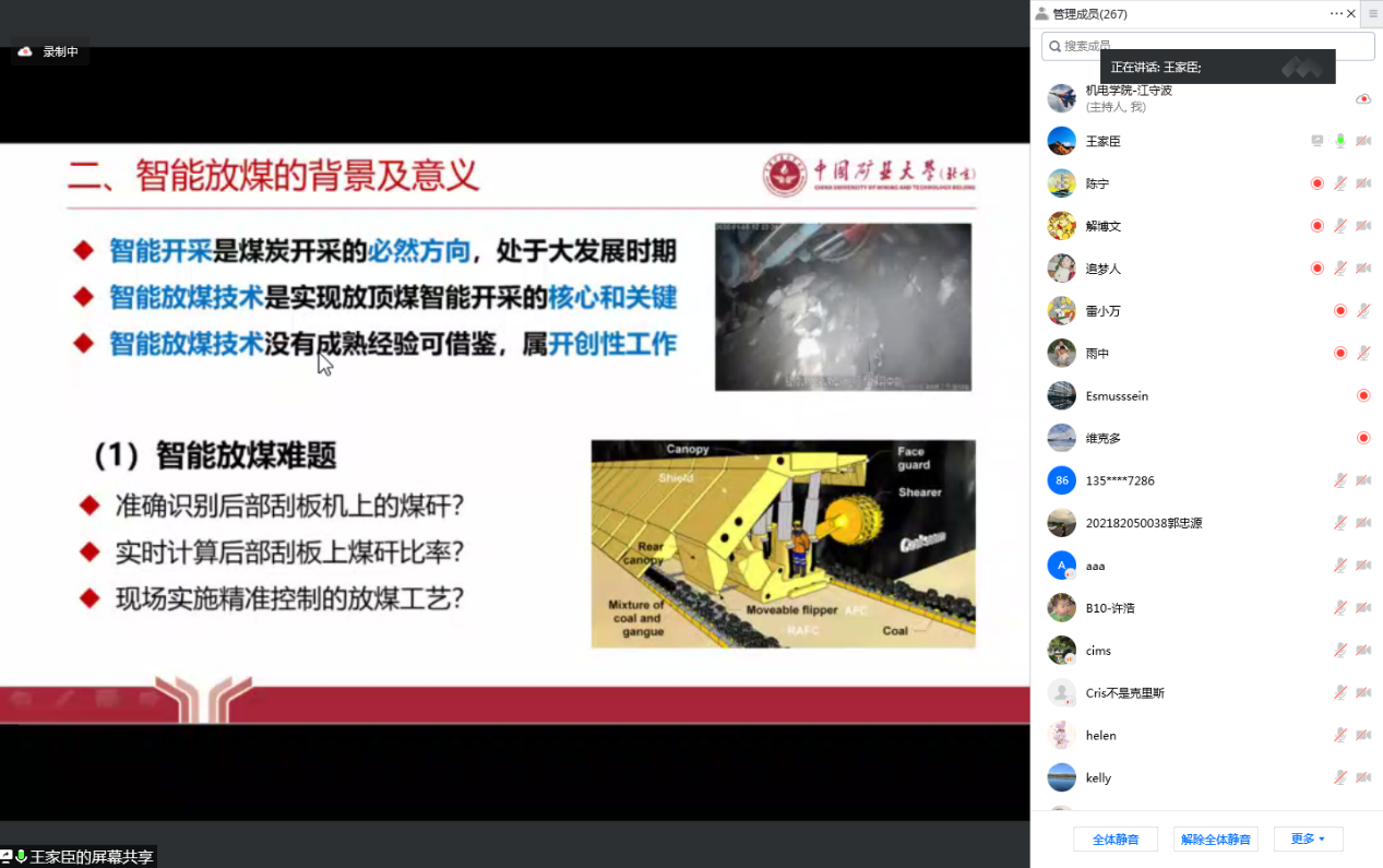 王家臣教授“图像识别智能放煤技术”报告会