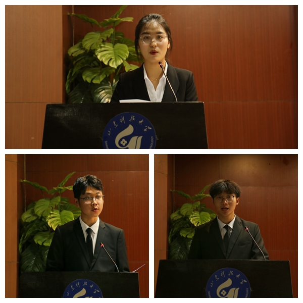 刘一鸣宣读致全体员工的倡议书,大会向全院员工会、员工干部及广大青年员工发出三点倡议:一是要坚定理想信念,发奋成长成才;二是要勇于开拓创新,锤炼高尚品德;三是要练就过硬本领,夯实圆梦基石;四是要矢志不渝奋斗,勇担使命责任。作为新时代青年,要牢记习近平总书记的教导,谨记“惟真求新”的科大校训,以饱满的热情投入到今后的学习、工作、生活中,为建设高水平应用型大学,为实现中华民族伟大复兴的中国梦,贡献青春磅礴力量!