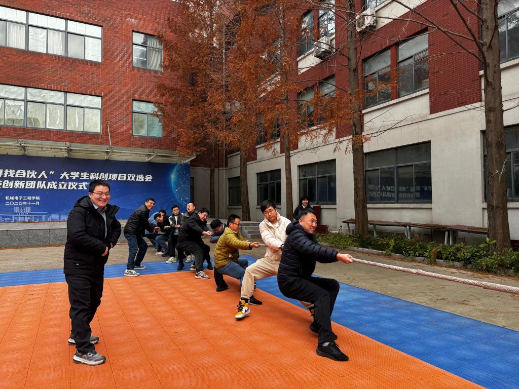 在投壶比赛中,老师们屏息凝视,精准投掷,展现出他们敏锐的眼力和高超的技巧。在跳绳比赛中,老师们轻巧灵活,步伐统一,各自拿出看家本领。在门球比赛中,老师沉着冷静,精准调整方向,将球滚入目标位置。在踢毽子比赛中,五颜六色的毽子上下翻飞,老师们起脚抬落间展现了出色的技巧与灵活性。而拔河比赛则是将运动会的氛围推向了最高潮,各系(办)抱团发力、全力以赴,在呐喊声中激烈竞争,毫不放松。