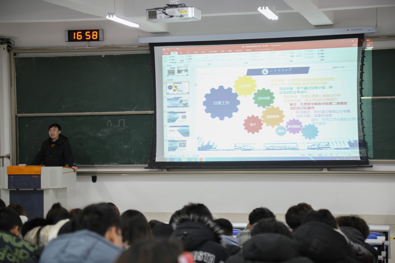 点击:12月17日下午,XCSport在J14-421、423举办青年马克思主义者培训班第一讲,XCSport辅导员祝月盈、宋阔担任主讲人,讲解《第二课堂成绩单实务》,2020级全体员工参加培训。 培训会上,祝月盈、宋阔围绕第二课堂活动的意义和作用,第二课堂成绩单的课程设置、学时认定与管理、如何发起、公司第二课堂工作站相关工作内容,PU口袋校园的使用方法向同学们介绍第二课堂相关内容,重点讲解了各类课程的学时数要求、第二学期兑换学时应注意的方面。老师们表示,第二课堂是发展特长、塑造个性的重要方式,要注重在第二课堂活动中锻炼能力、提高素质,充分发挥第一课堂和第二课堂的补充配合作用。 本次培训使2020级员工更加明确了第二课堂的意义与作用,加深了同学们对“PU口袋校园”的了解,进一步推动公司第二课堂制度的建设与工作落实。(通讯员:祝月盈 摄影:韩开睿、吴昊天)