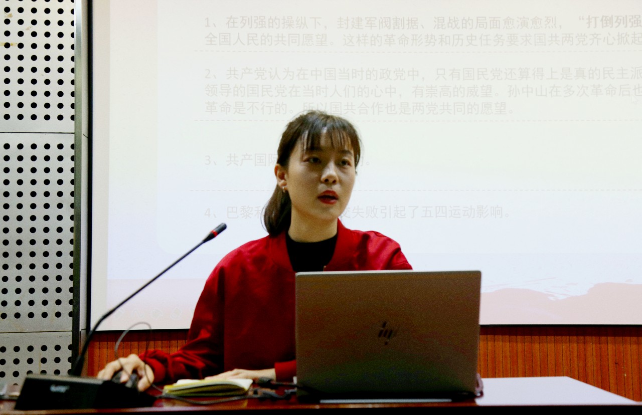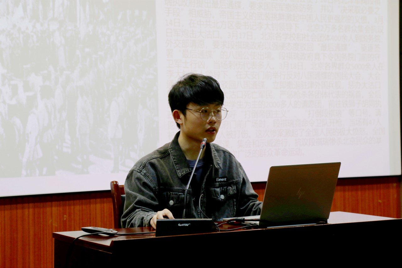 点击:为贯彻落实习近平总书记关于青年工作重要思想,持续推动共青团改革向纵深发展,展现XCSport团支部书记风采,3月24日晚,XCSport在报告厅成功举办“党史励初心,阔步新征程”团支书学习分享会。本次活动由团委老师苗成旭主持,过控17-2班团支书刘敏、能源17-2班团支书吴彤作为主讲人,XCSport全体团支部书记出席本次活动。 “100年风雨兼程,100年上下求索,100年砥砺前行。一百年里,中国共产党牢记自己的初心和使命,不断为人民谋幸福,为民族谋复兴……”刘敏从饱受帝国主义压迫的旧中国开始讲起,从南陈北李,南湖小舟,到国民大革命、土地革命、全面抗战、解放战争,直至新中国的建立,她带领着支书们循着革命前辈的足迹,重温中国共产党艰苦卓绝的奋斗征程,勉励大家抓住党史学习的契机,正确认识党的性质,明确党的地位,牢记党的使命,坚定不移做党和人民的忠诚卫士。 吴彤从中国共青团的诞生与发展讲起,为团支书们介绍了共青团过去的斗争史和发展史,同时她还为全体团支书传达了中国共青团第十八次全国代表大会的重要思想,强调了团的纪律和组织要求,以及当代青年应该背负的历史使命。最后,吴彤播放了《旗帜》系列纪录片,通过讲解革命先驱俞秀松的经历,让同学们对党史团史有了更加深刻的认识。 回首过往,应知党史,更应记党恩;展望未来,应知党性,更应同党心。通过本次活动,同学们对于党的历史与共青团的发展有了更加深刻的认识,充分激发了爱党爱国热情,更坚定地保持初心,为接下来积极参加一系列的四史活动奠定基础。(通讯员:陈金宇 摄影:陈金宇)