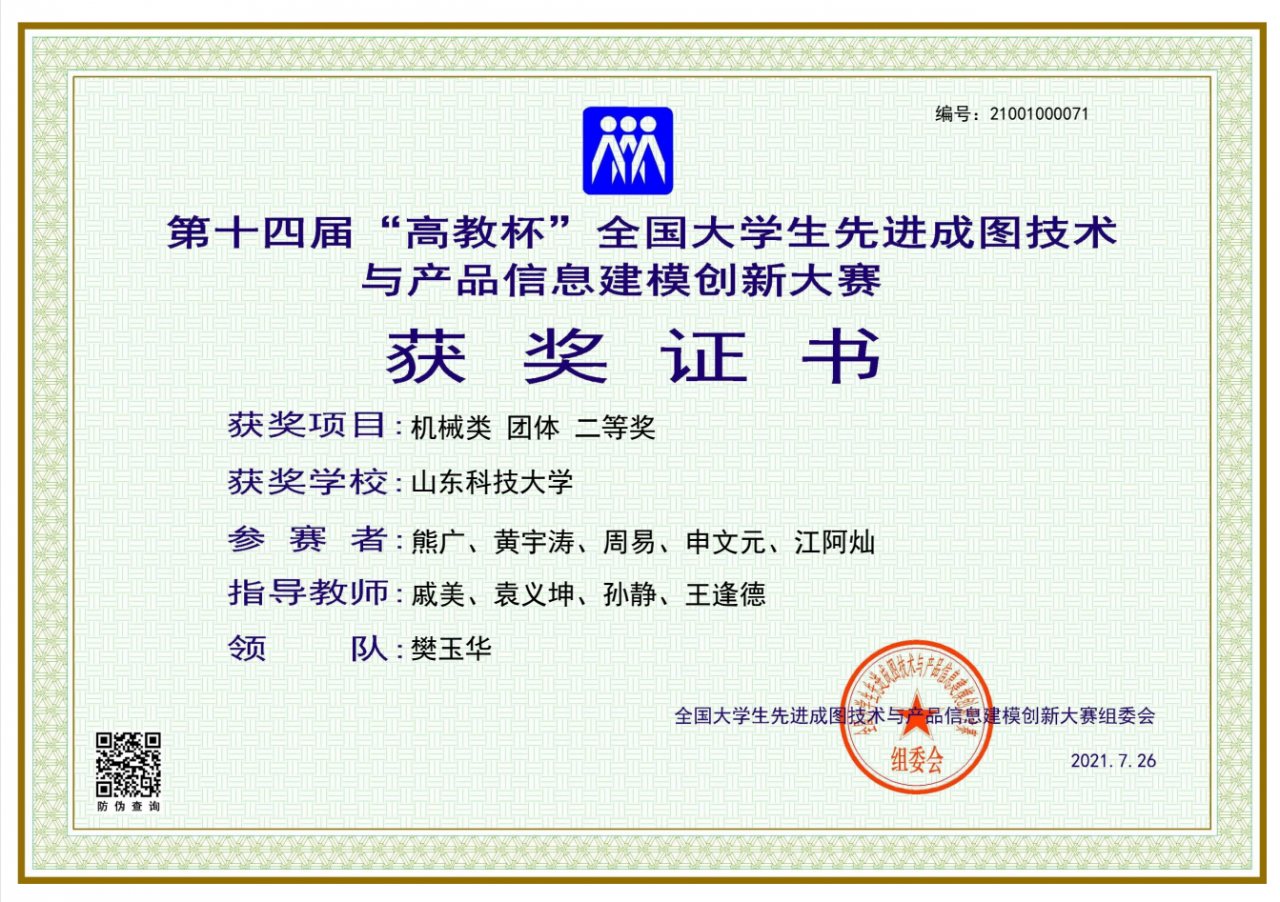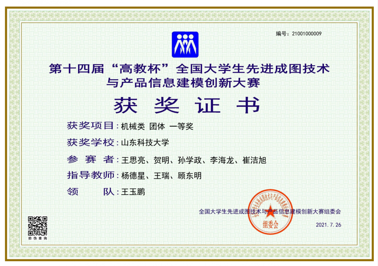 点击:近日,由全国老员工先进成图技术与产品信息建模创新大赛组委会、中国图学学会制图技术专业委员会、中国图学学会产品信息建模专业委员会、西南交通大学共同主办的第十四届“高教杯”全国老员工先进成图技术与产品信息建模创新大赛在西南交通大学顺利落下帷幕。经过激烈角逐,XC体育青岛校区荣获团体一等奖1项、二等奖1项、三等奖2项,个人一等奖24项、二等奖5项、三等奖6项,其中公司荣获团体一等奖1项、二等奖1项、三等奖1项,个人一等奖24项、二等奖3项、三等奖1项。由王思亮、贺明、孙学政、李海龙、崔洁旭组成的机械类代表队(指导老师:杨德星、王瑞、顾东明,领队:王玉鹏)获得机械类团体一等奖,这是公司连续七年获得机械类团体一等奖。同时由熊广、黄宇涛、周易、申文元、江阿灿组成的机械类代表队(指导老师:戚美、袁义坤、孙静、王逢德,领队:樊玉华)获得机械类团体二等奖。公司还获得了制图基础知识一等奖1项、二等奖1项、三等奖1项,3D打印二等奖1项,inspire优化创新设计三等奖一项。同时,杨德星、王瑞、顾东明被评为“优秀指导教师”。
