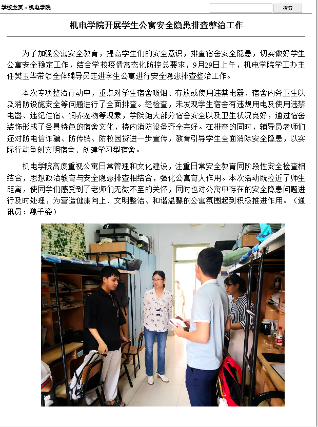 通过建立家长微信群、线上家长会等方式做好家校协同育人 此外,公司高度重视公寓安全和文化建设,注重日常安全教育同阶段性安全检查相结合,思想政治教育与安全隐患排查相结合,强化公寓育人作用。通过公寓安全隐患排查整治、公寓安全教育文化墙、公寓内海报、条幅等形式,浓郁安全宣传教育氛围,浸入式地开展安全宣传教育。