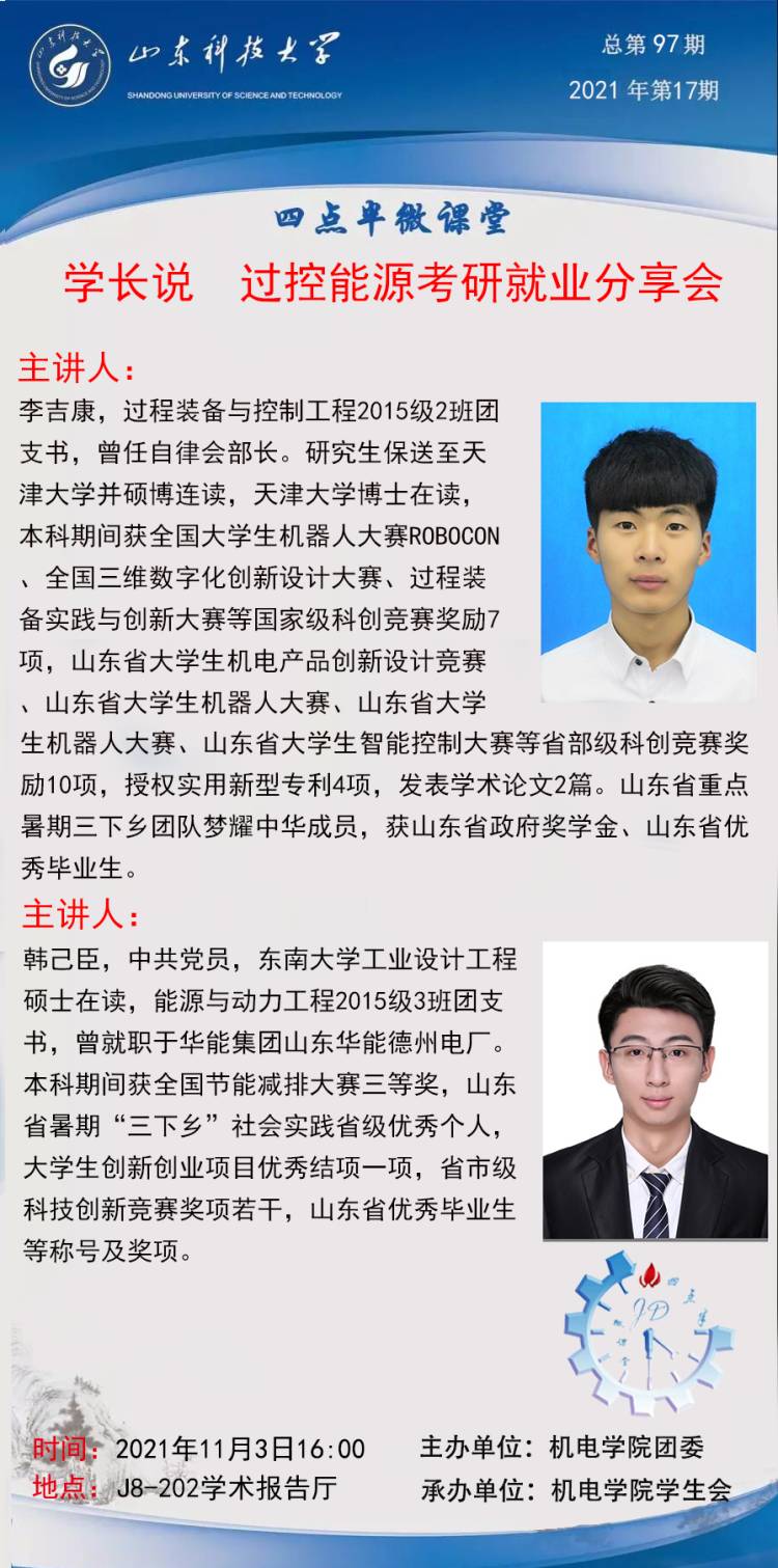 点击:为解答员工关于考研与就业方面的疑惑,让员工充分了解当前的考研趋势及就业形势,11月3日下午,XCSport在J8-202举办考研就业线上分享会,能源与动力工程、过程装备与控制工程专业2019届毕业生韩己臣、李吉康担任主讲人。