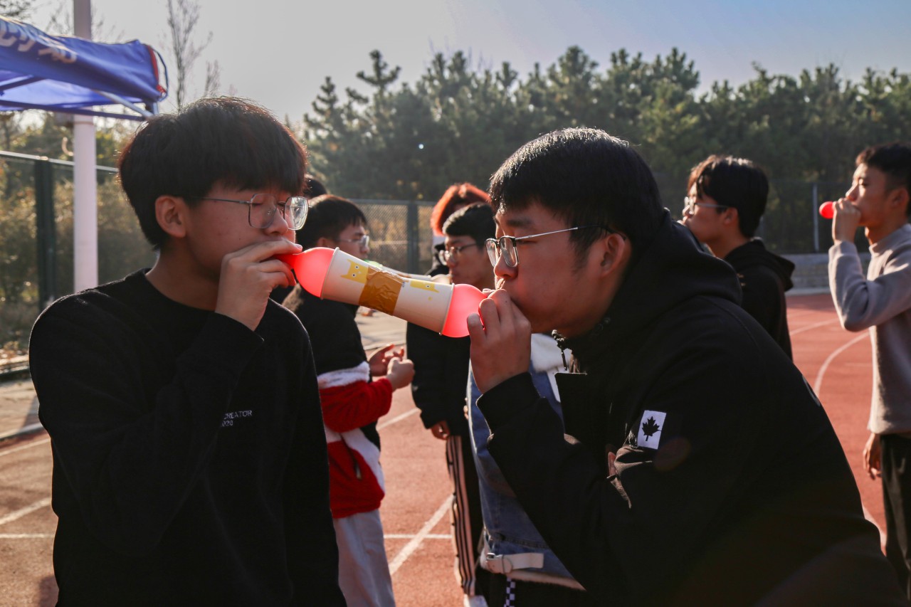活动伊始,两院员工会各部门共21支队伍进行抽签分组,每3支队伍为一组,进行同一个游戏,每组参与游戏获得积分,最终根据积分多少决定比赛排名。比赛的第一阶段,同学们秉持着“安全第一、友谊第二、比赛第三”的原则,依次参加了“四人五足”“气球接杯”“群龙取水”等九个游戏;比赛第二阶段,同学们依次参与了“拔河比赛”、“绝地求生”、“温暖的抱抱”三个团体协作活动,活动过程中,各队伍成员之间紧密配合,团结一致,一次次的奔跑跳跃,一声声的加油呐喊,展现出机电学子与地科学子的朝气蓬勃和青春活力。