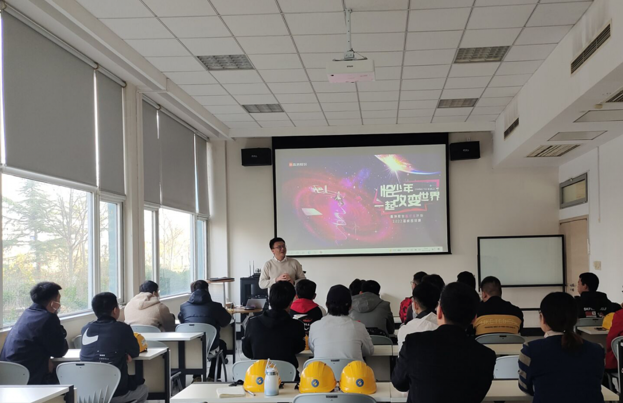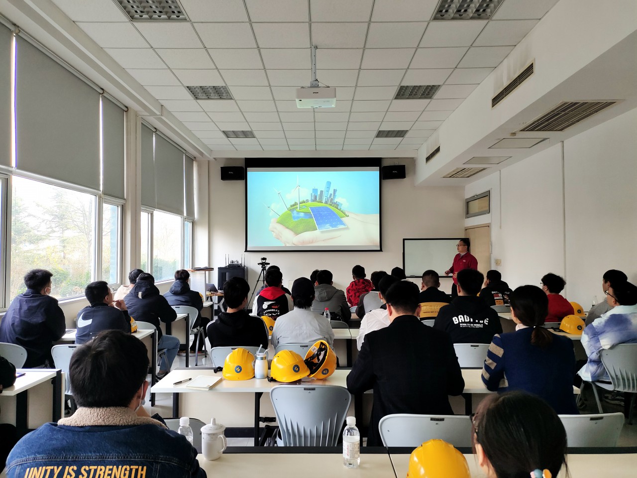 随后,高测光伏技术工程师高峰运用图文、视频向大家详细介绍了光伏领域发展行情、企业发展规模和生产运行方式。人力资源部经理臧彬彬向同学们开展了一场题为“恰少年,一起改变世界”的校园招聘宣讲,他从公司的主营业务、取得成就、发展前景和企业文化等方面对企业进行介绍,鼓励同学积极在就业过程中实现个人价值。宣讲过程中,同学们认真倾听,积极反馈,与企业负责人交流就业本领、薪资待遇、发展方向等与员工就业息息相关的问题。最后,机电师生走入生产流水线,进一步了解企业生产规模,感受制造行业的魅力。