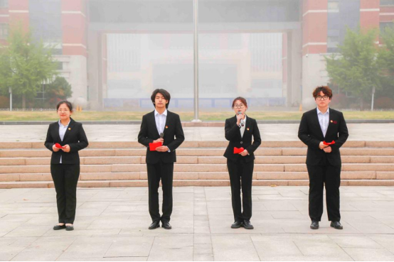 升旗仪式后,梦耀中华服务宣讲团成员在国旗下作《弘扬沂蒙精神,争做时代青年》主题宣讲。四月暖阳,宣讲员在充满生机的清晨里,声情并茂地诵读沂蒙妇女李桂芳用身躯架起“火线桥”、沂蒙母亲王换于抚养四十多名革命后代长大成人、沂蒙百万人民参加抗战为国捐躯等一个个感人鲜活的事例,诠释了军民“水乳交融、生死与共”的沂蒙精神。在场的师生肃然起敬,感受到了沂蒙人民团结奋战、攻坚克难、勇往直前的伟大力量。最后,刘丰鸣同学带领同学们重温入团誓词,铿锵有力的誓词飘荡在四月春风里,立志报国、勇担重任的豪情激荡在每位青年员工的胸膛……