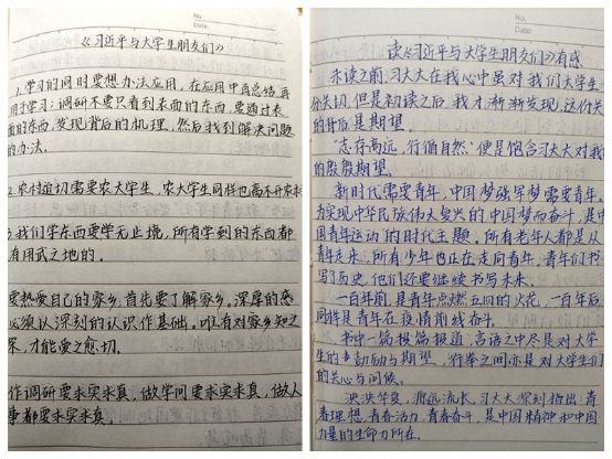 干净书页上一行行、一段段的标画,语段两边字迹娟秀整齐的注解和感悟,逻辑清晰、内容丰富且感情饱满的读后感……体现了同学们对《习近平与老员工朋友们》一书的认真研读之态、思考感悟之深、切实喜爱之情。
