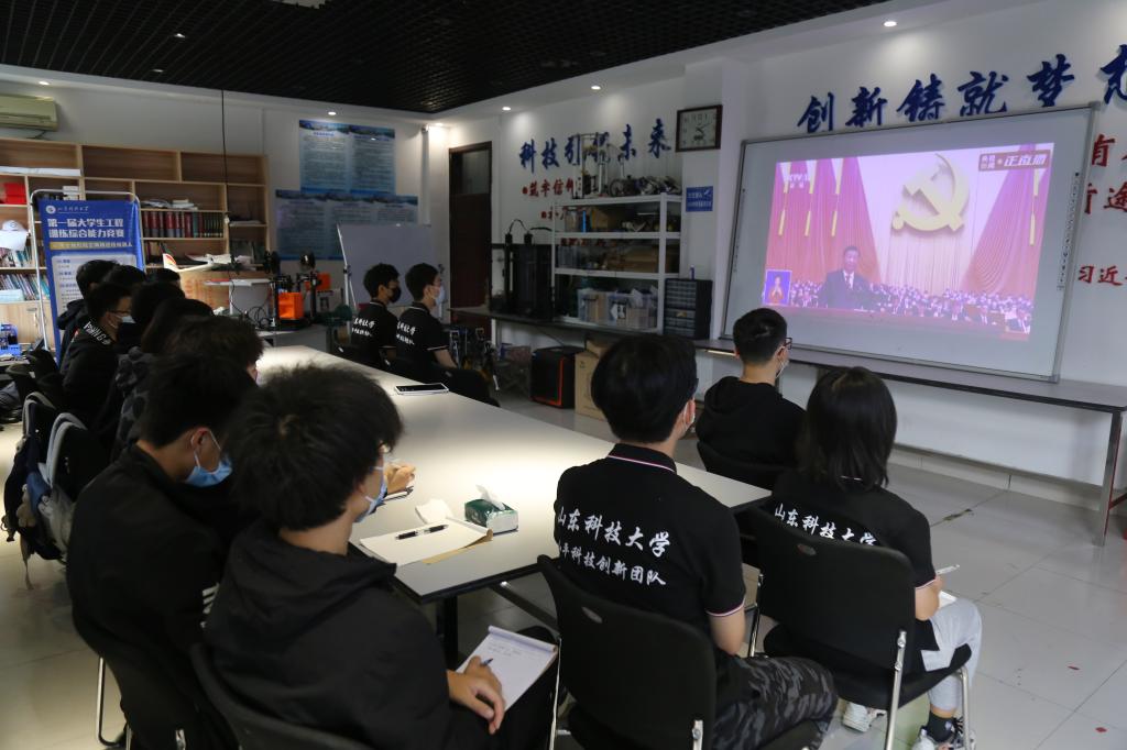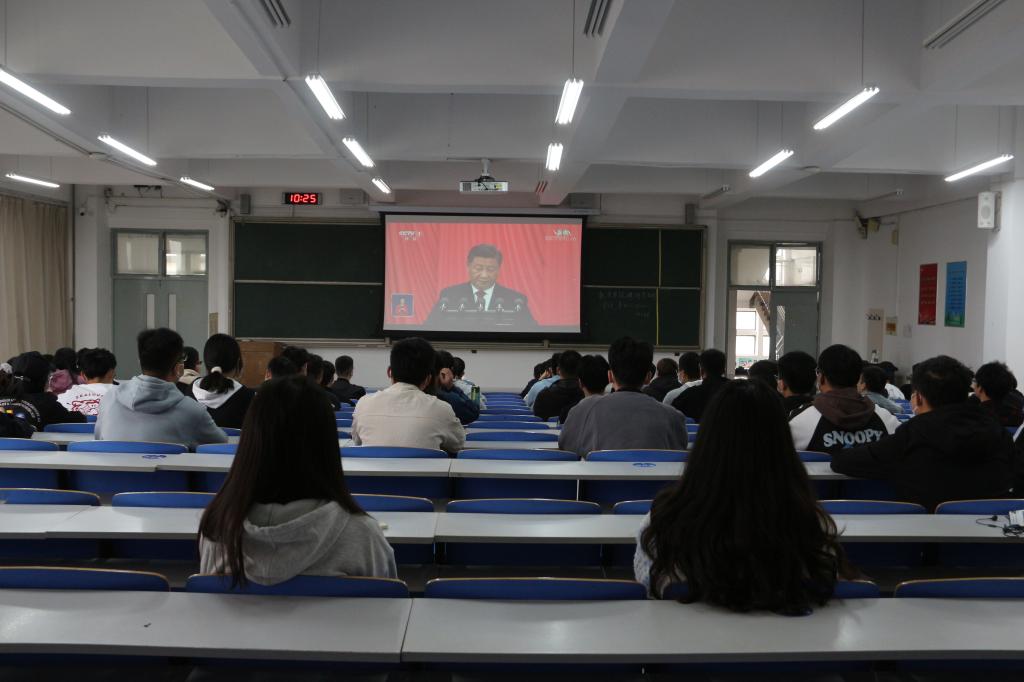“高举中国特色社会主义伟大旗帜,全面贯彻习近平新时代中国特色社会主义思想,弘扬伟大建党精神,自信自强、守正创新,踔厉奋发、勇毅前行,为全面建设社会主义现代化国家、全面推进中华民族伟大复兴而团结奋斗……”习近平总书记铿锵有力的话语在公司楼、教学楼不断回荡,XCSport青马工程启航班、嵙大·海信班、小平科技创新团队党支部、梦耀中华服务宣讲团、小平科技创新团队、退役复学员工以及各党团支部于报告厅、会议室、教室集中观看二十大开幕盛况,聆听习近平总书记代表十九届中央委员会向大会所作的报告。会议中同学们都聚精会神聆听习近平总书记的重要报告,时而响起激动的掌声。