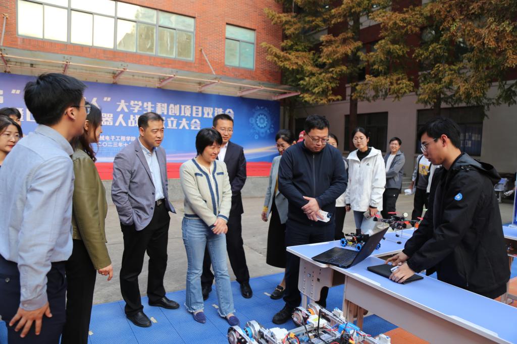 随后,科创项目双选会正式开始,参会嘉宾参观机电学院第四届“寻找合伙人”老员工科创项目作品。各个项目负责人热情地向领导老师们解说项目的设计理念和功能,展现着科创人的风貌。