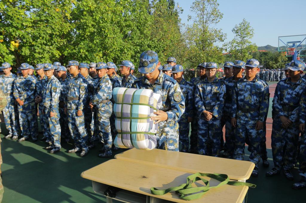 下午,训练项目切换为叠被子,教官们一边操作,一边耐心讲解,从铺平被子的每一个褶皱,到用力压实确保平整无皱,再到灵巧翻折、精确扯角,最后细致捏线调整形状,每一个步骤都显得那么干练而有序。同学们全神贯注,目不转睛地观察着教官的每一个细微动作,生怕错过任何一个技巧点。