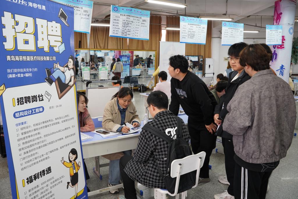 双选会现场呈现供需两旺态势。各企业展位前,HR团队从关于我们、主营业务、企业文化等方面出发,全方位展示企业发展前景和人才需求。毕业生们手持精心准备的简历,结合个人优势与企业HR深入交流,部分展位前甚至排起“人才长龙”。值得关注的是,现场吸引逾200余名2026届员工提前“练兵”,他们通过就业形势调研、岗位需求分析,为职业规划锚定方向。“通过与HR面对面交流,我对智能制造岗位的能力要求有了更清晰的认知。”机械设计制造及其自动化专业张凯媛同学收获颇丰。此外,公司党委副书记兼副经理刘梅月带领就业指导团队全程驻场,既当“调研员”收集企业用人新趋势,又做“推荐官”为毕业生精准画像。