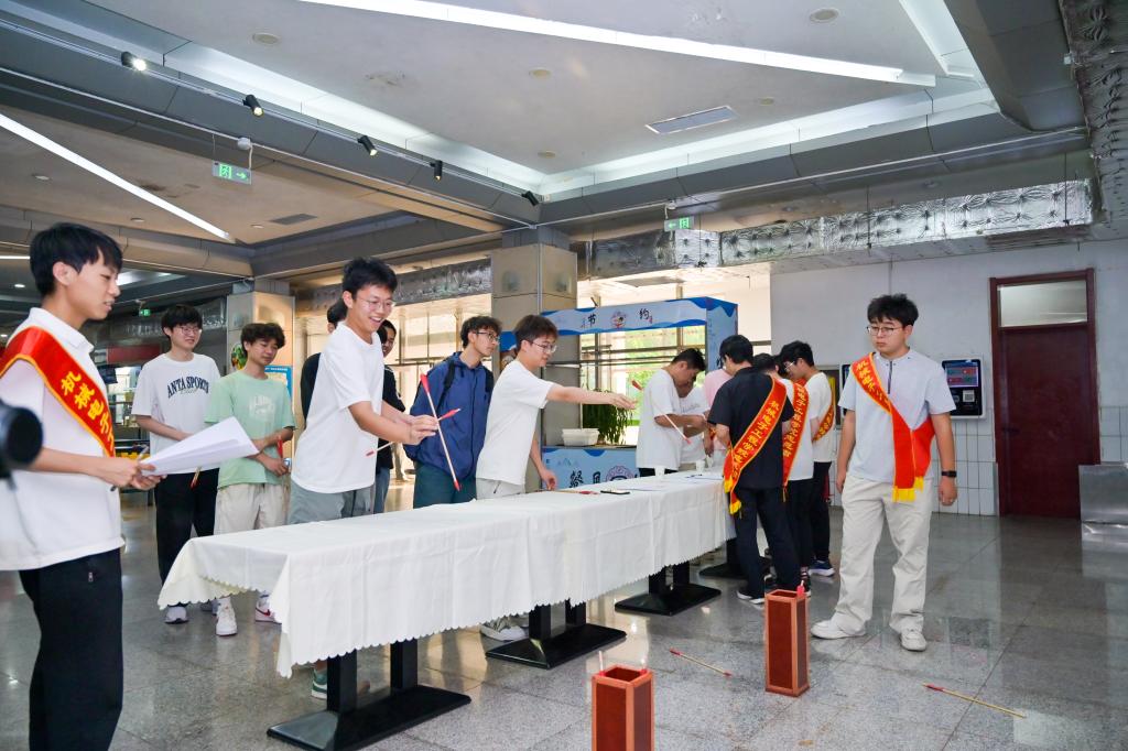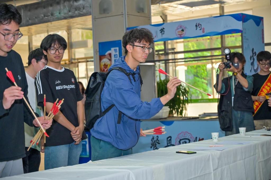“趣味投壶”环节,同学们手持箭矢,凝神静气,竹矢入壶的脆响里,青年学子体悟 “礼射”中“发而不中、反求诸己”的君子之道。