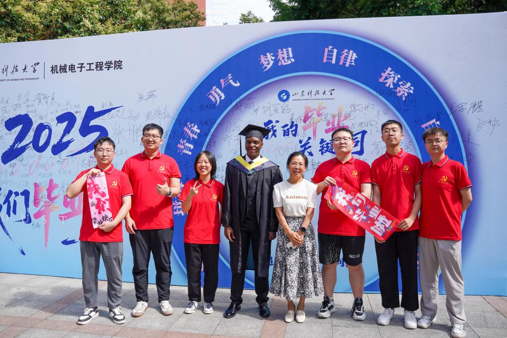 清晨的阳光为签名墙镀上一层暖金。毕业生们执笔写下最后一行寄语,笔锋流转间,既有“感恩母校培育”的温情回望,更有“敢教日月换新天”的豪迈宣言。“2025,机电等你荣归!”“把论文写在祖国大地上”等留言,字字滚烫,勾勒出新时代青年的责任与担当。随后,师生们在签名板合影留念,定格下这个夏天最珍贵的青春模样。