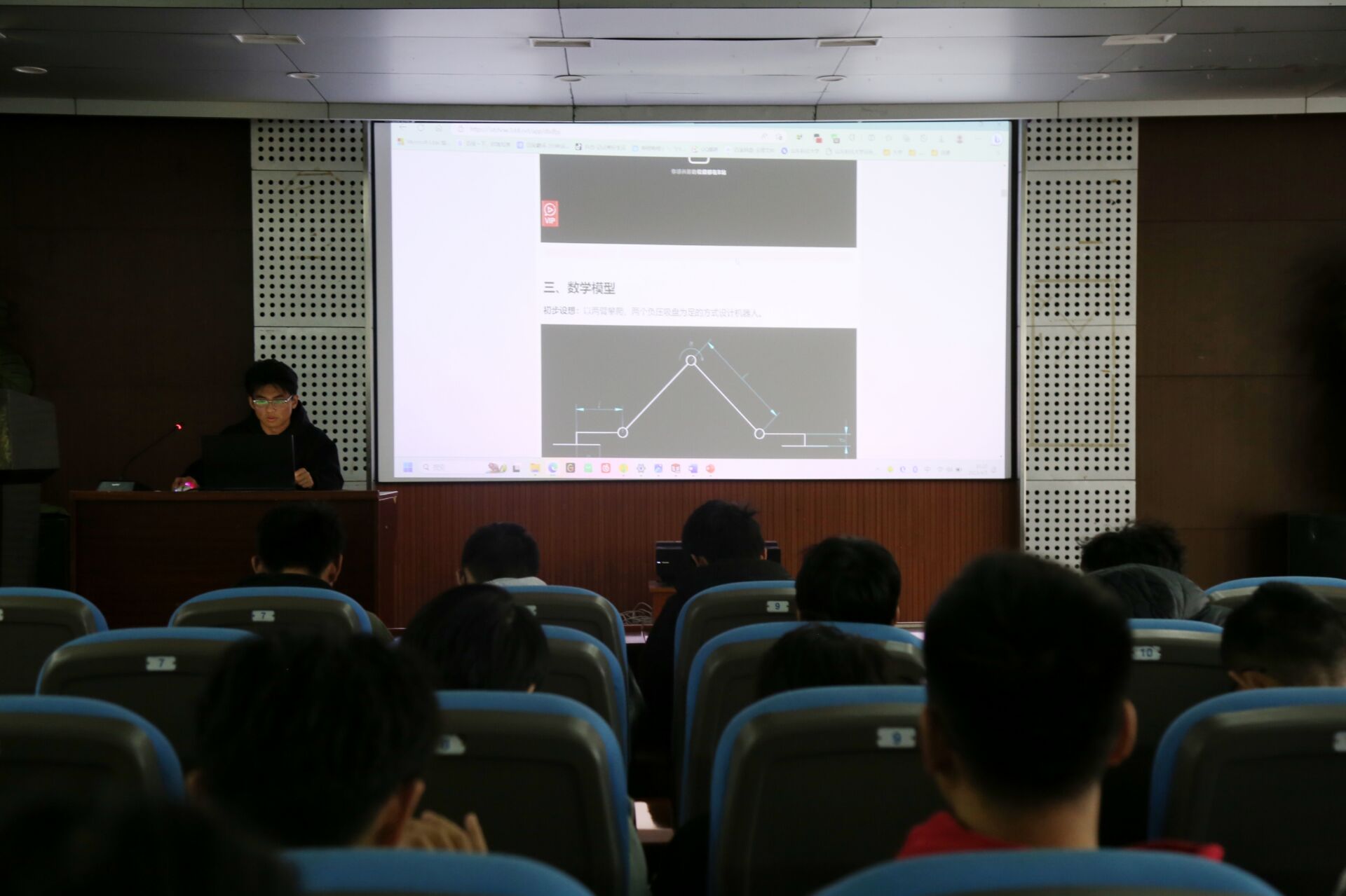 会议伊始,崔洁旭结合自己参加科创比赛的经历,就三维建模对学习的帮助、“高教杯”竞赛的内容、科创比赛流程以及奖项设置等方面展开宣讲,鼓励大家积极参与创新创业计划。随后,王新杰以三维数字化建模大赛为例,介绍了科创竞赛的参赛流程及方法,并展示了部分大赛对参赛作品的要求。最后,申文元讲解了中国机器人及人工智能大赛的相关内容,极大的提高了同学们对科创比赛的兴趣。