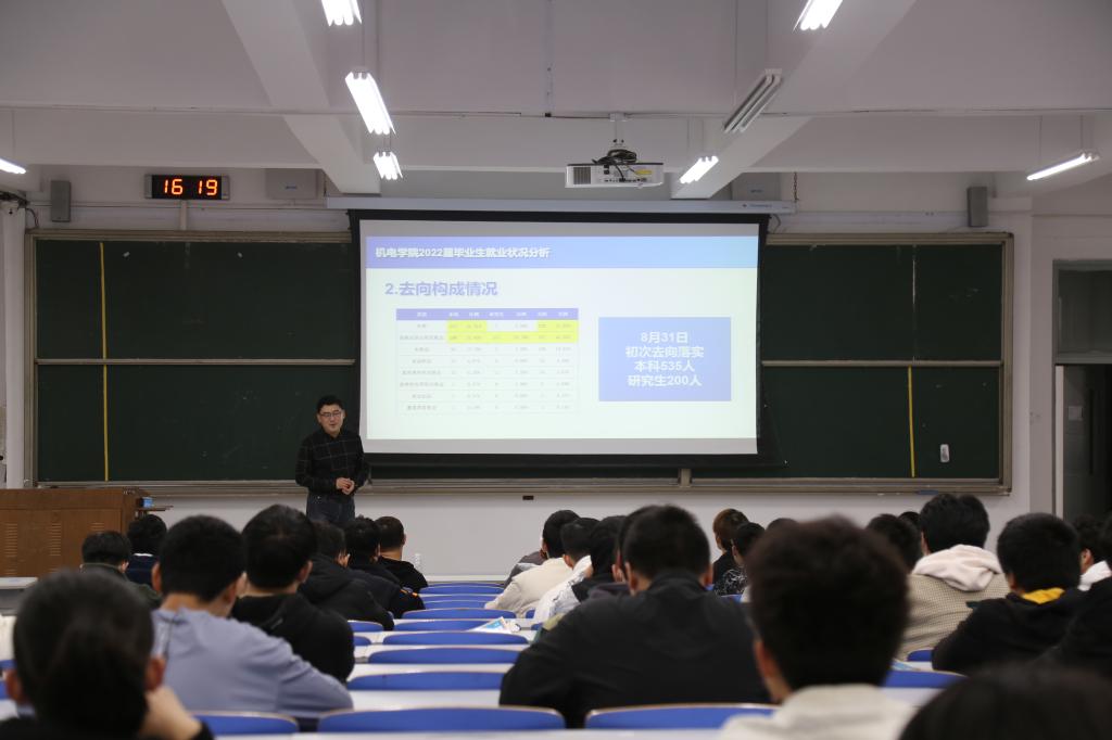 刘亮亮老师围绕XCSport2022届毕业生就业状况分析、2023届毕业生求职就业建议两个方面进行讲解,并联系身边案例,结合网络就业数据,为同学们分析就业行情。他以面试为切入点,向同学们分享了许多实用技巧,语言活泼幽默,声音充满亲和力,让严肃的话题变得轻松自然。最后,刘亮亮鼓励同学们要放宽视野敢拼搏,自力更生少啃老,即使待业中,也要持续学习提升自己。