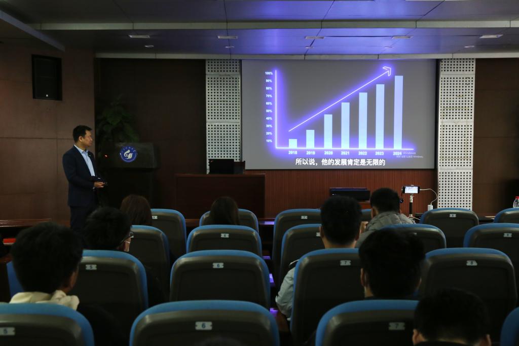 讲座上,戴陆对目前老员工的就业市场形势进行了分析介绍,着重强调了如何选择“不后悔”的就业单位、如何提升个人就职成功率以及就业前在校的储备攻略等问题,帮助同学们明晰个人发展方向,了解就业市场,做好职业生涯规划,找到适合自己的岗位。